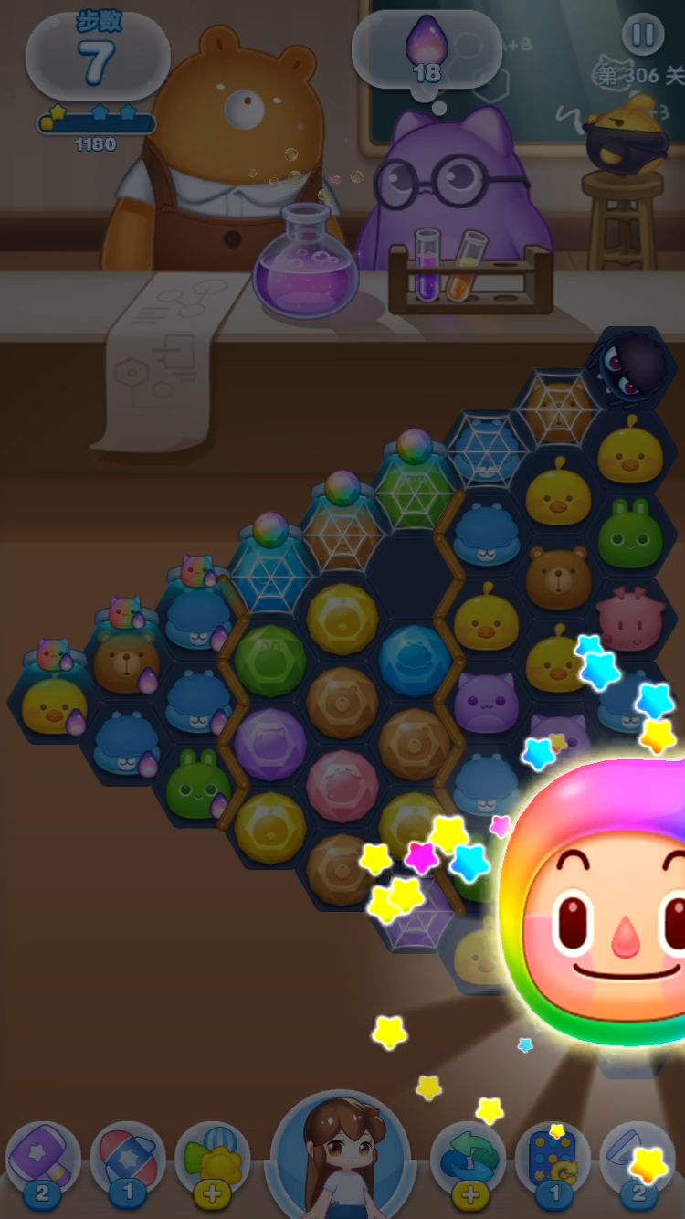 如果有大量的变色弹珠出现在某一关卡,那么这就相当于我们很难安排下一步的消除路线,一切操作都只能在当前局面下生效。这么大的不确定性,也考验了我们随机应变的能力。虽然困难是有的,但是我们的大体方向还是确定的,那就是根据通关要求来定。首先我们要尽可能构造更多的特效炸弹,利用特效炸弹来完成通关目标。其次是遇到某些边边角角的通关目标附近有变色弹珠,一定要尽早把其解决掉。否则一不小心很容易就把步数耗尽也不能通关,只能干着急。不知道下一个合适的消除场景会在什么情况下出现。