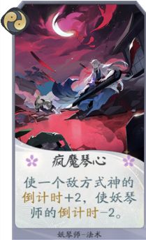 卡牌效果:使一个敌方式神的倒计时+2,使妖琴师的倒计时-2