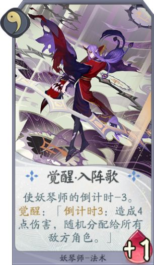 觉醒能力:觉醒 · 入阵歌,使妖琴师的倒计时-3,觉醒:「倒计时3:造成四点伤害,随机分配给所有敌方角色」
