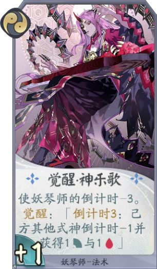 卡牌作用:触发了多少种觉醒能力决定了这张牌的上限,虽然是一勾玉法术卡牌,但我们更多是在中后期,至少在大合奏获得了觉醒神乐歌的效果后再使用。