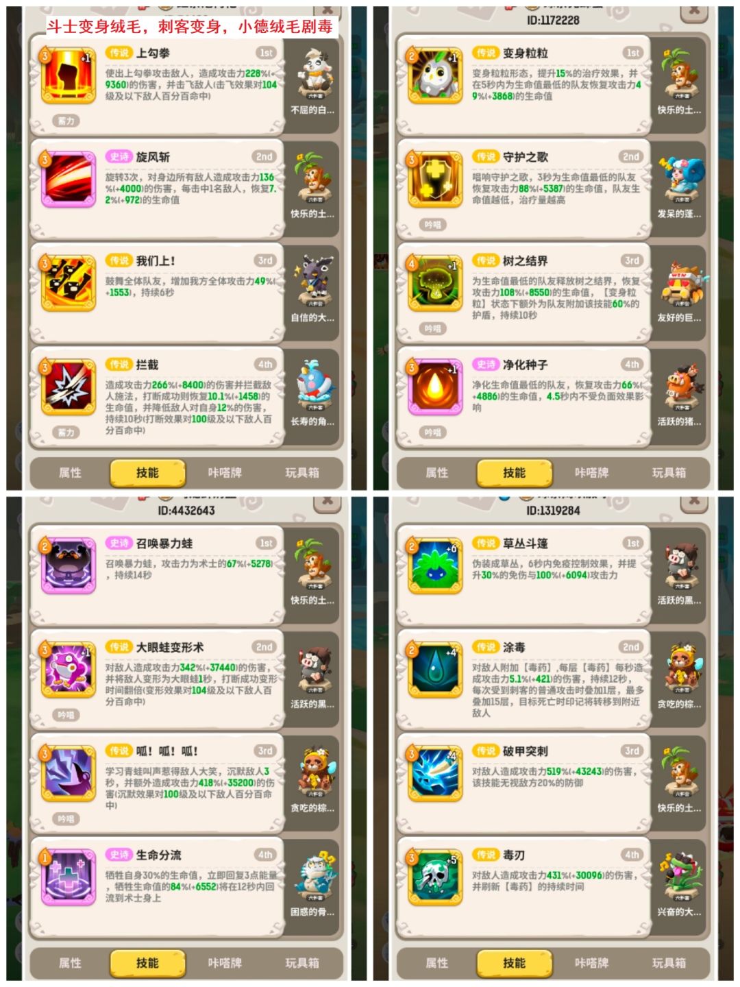 卡牌牌组说明,除特别说明外斗士小德均带绒毛,且小德带剧毒卡组。