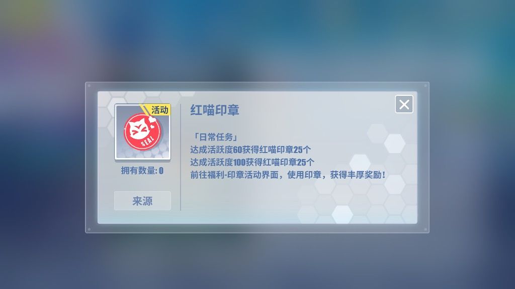红色印章的获得:完成日常任务,活跃度达到60和100时,分别能获得25枚印章。也就是一天通过完成日常任务可以轻松获得50枚红色印章。