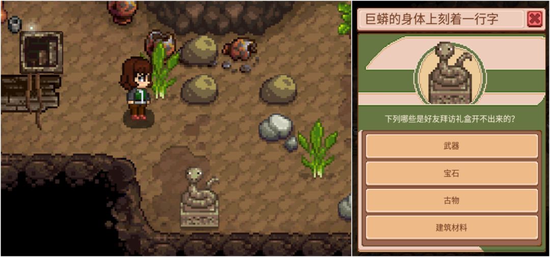 选择正确可随机获得金币(基本开到这个居多)、古物、药水(防御药水,攻击药水等)。