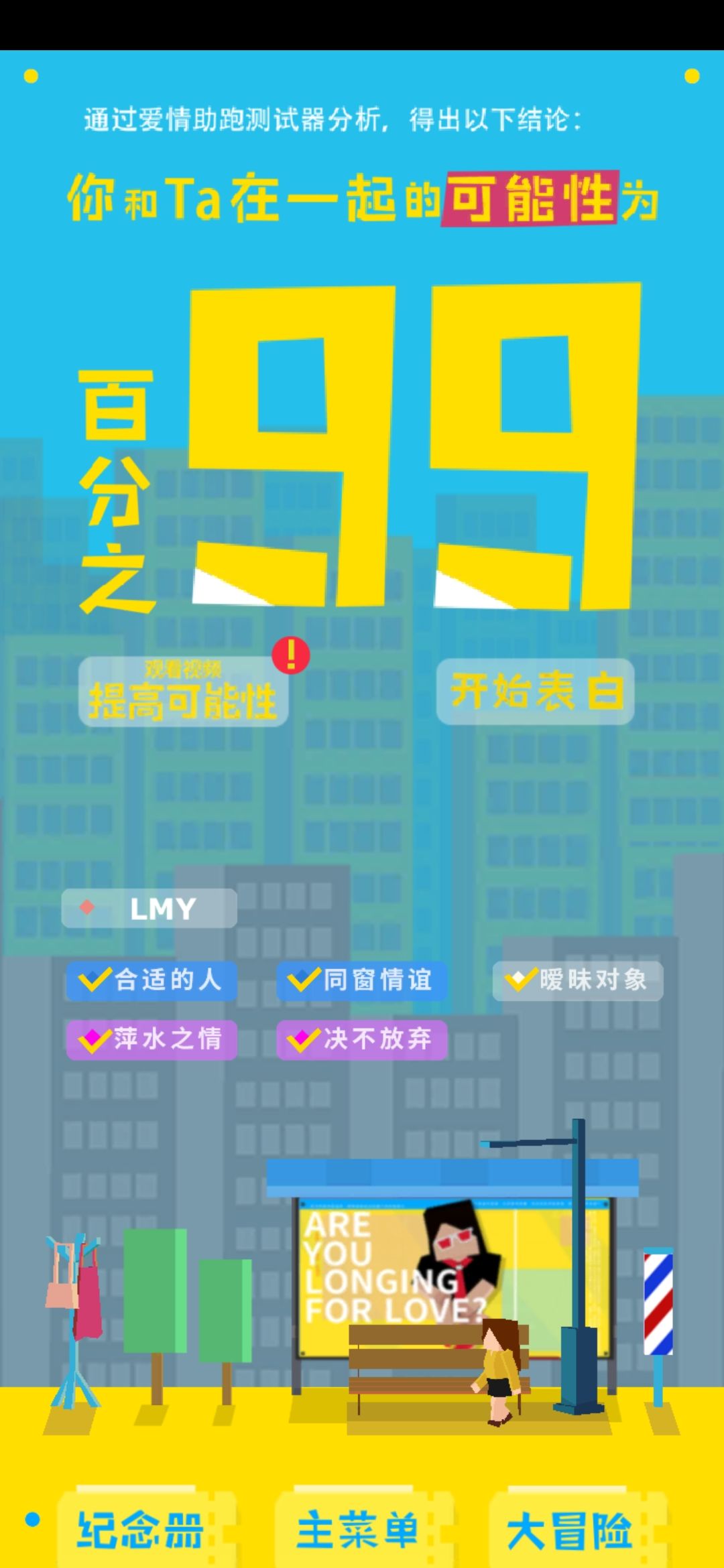 看了一个广告,变成99,结果就无法表白了,好不容易有一个能看真结局的人,你给我搞这出,限你一个月之内改完这个bug,不然杀了你哦