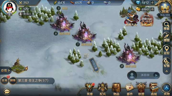 6.暗影城堡三种状态:黑暗势力驻守、玩家驻守、空(无人驻守)。在黑暗势力驻守时,有很少几率会主动出兵攻打玩家城堡。