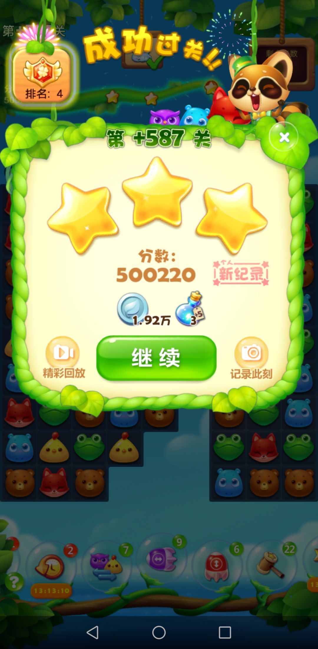 右下角闲走,等左上角特效有两个在左边的时候,用掉特效,双瓶交换收钥匙,右侧组横特,打飞机,难点在左下角的那一只,这把用了个刷新,最后一步险过关,500220,勉强三星不用补星了