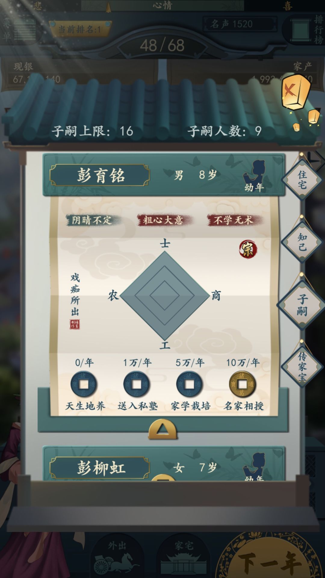 那个宗族世宅加100点孩子是每岁都加100点,造成这样的结果