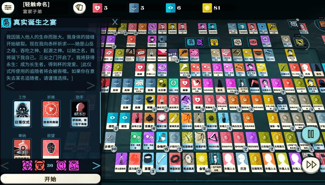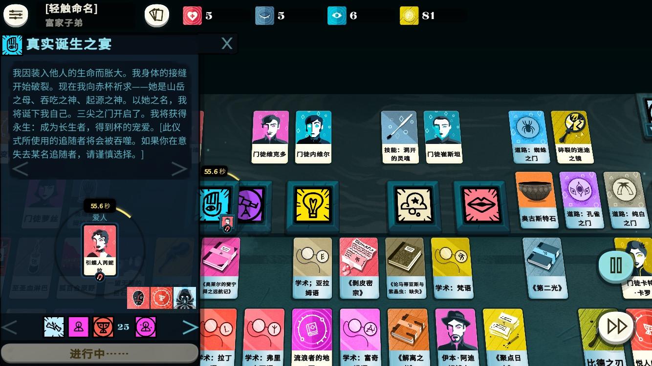 我中和了一下想法仪式召唤了12杯12刃伊泽姆开始推图,希望能找到镜子和道具。然后20分钟一路从1级欲望升到6级,中间情人一直在勾引囚徒,没有一点时间消邪名和不确凿证据。但是一直没有找到镜子和材料。