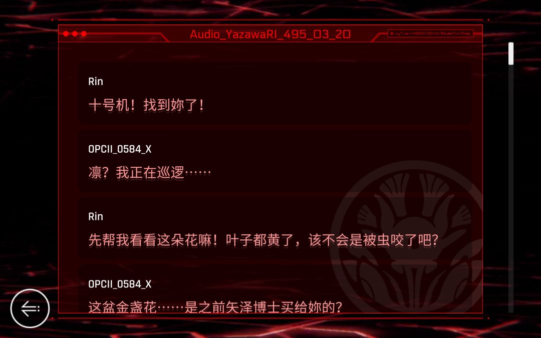 在前20级的剧情中,编号为“OPCII_0584_X”的建造者可以称的上是女二号,并且在Rin剧情中,她也是少有的名字是以英文,数字,符号组成的角色。