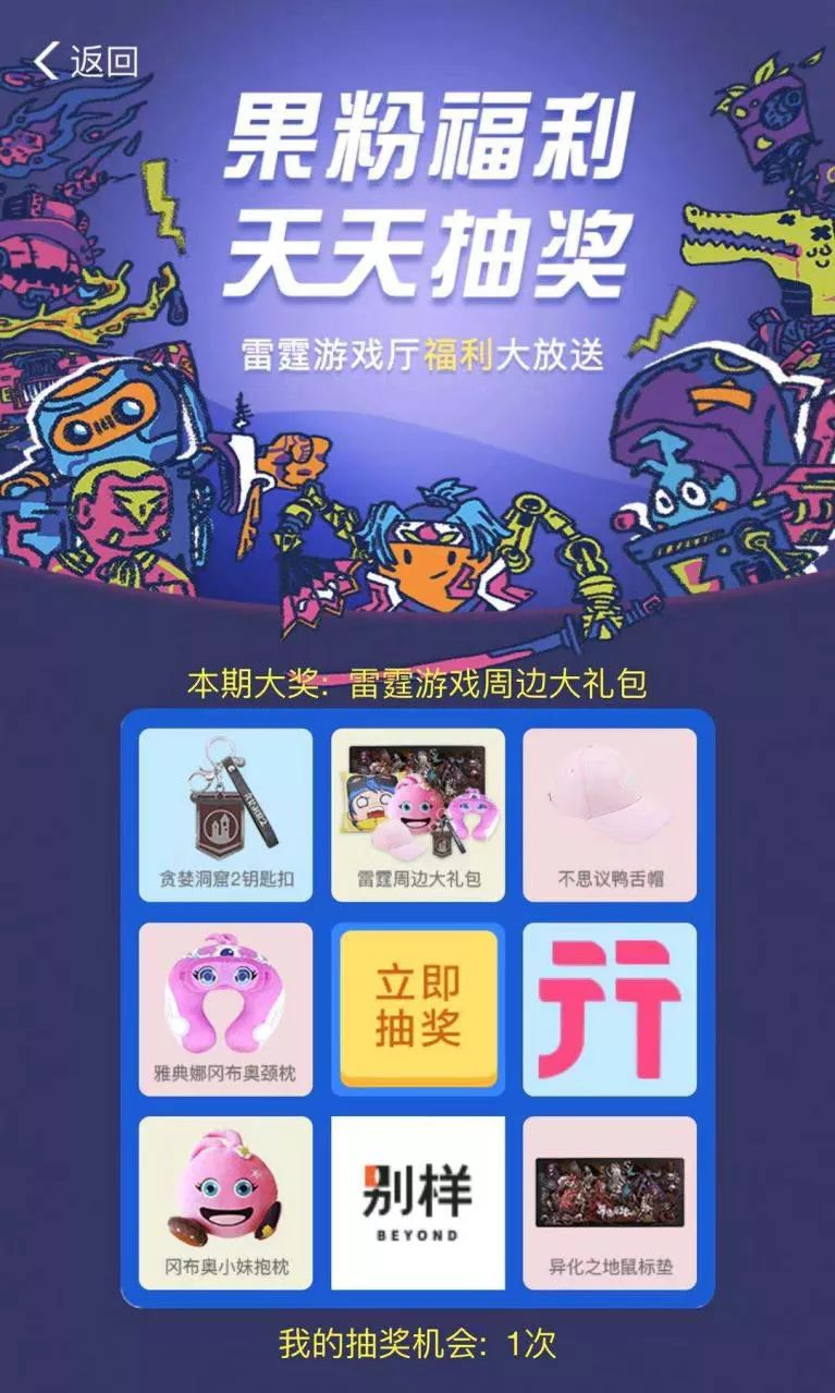 活动①:雷霆游戏厅,天天抽周边