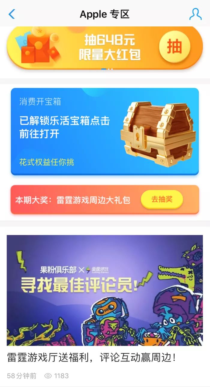 雷霆游戏的苹果用户在App Store应用商店绑定支付宝为首选付款方式后,即可在支付宝搜索“果粉俱乐部”登录活动主页参与每日抽奖!奖品数量多多,机会多多!