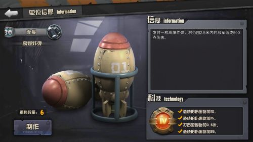 建议优先提升高爆炸弹的科技,可以先升至科技3,解锁增加范围的科技。