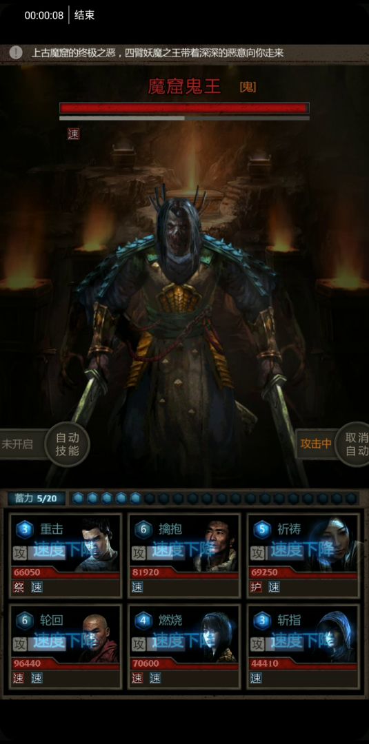 PS:鬼王的技能扭曲时间和吞噬力量,并不会吸取我方的速度和攻击,所以千钧啥的放心吃。