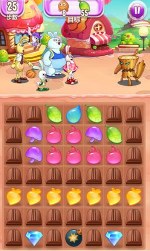 个人习惯是把上一层的元素先解决,障碍物会先行破碎说不定可以碰到更多的黄色元素触碰炸弹清屏也说不定哟。