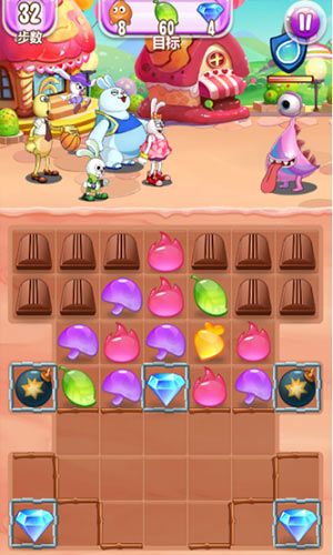 要求:32步内消除7个贪吃怪,5个钻石。