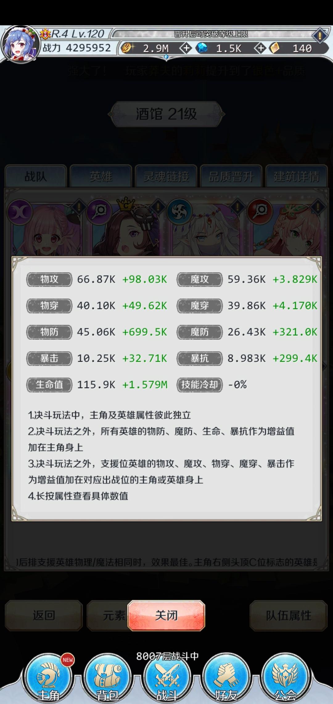 给大家贴一下我的阵容以及主角物防 8000左右boss属性图以及7800多最后魔防特化图 仅供参考!