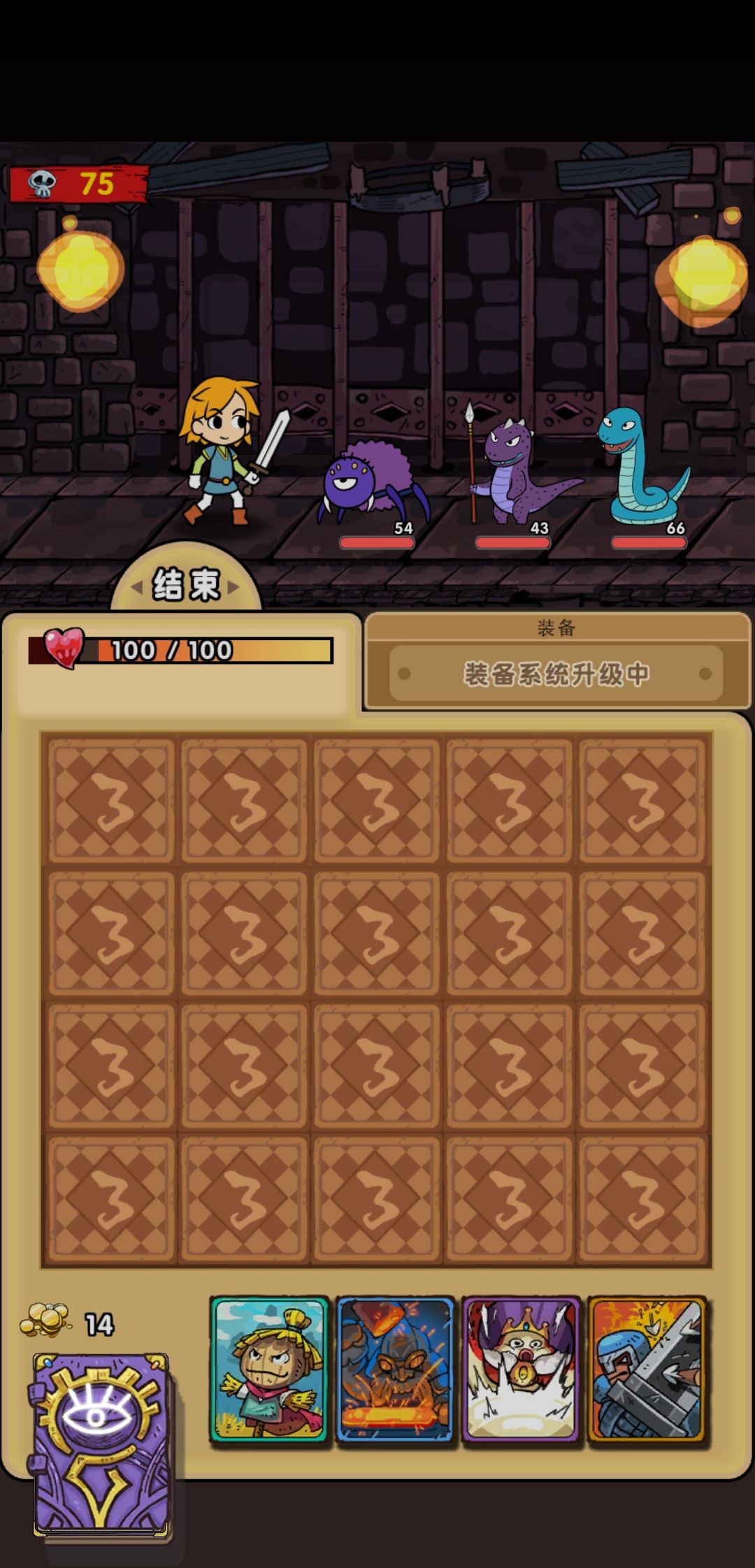 打法很简单,就是翻牌等回合升级,等级满了就用,等级不高且没法杀死怪就过。