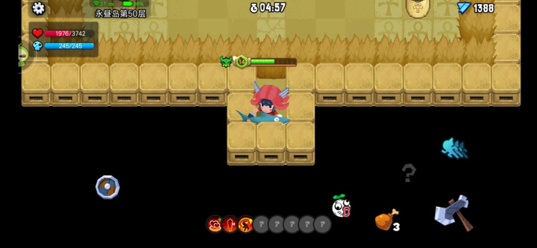 开局经验加成为115.2,在第四,五层会连升俩级,这是只会出现一个技能选择,然后之后无论升多少级都不会出现任何技能选择,由此(第二张图),第50层只有三个技能三橙装的我压根打不过冰芯灵,甚至打到50层耗费了两个鸡腿(特别累)