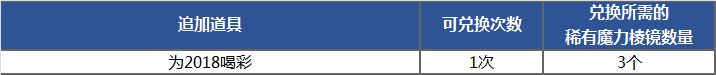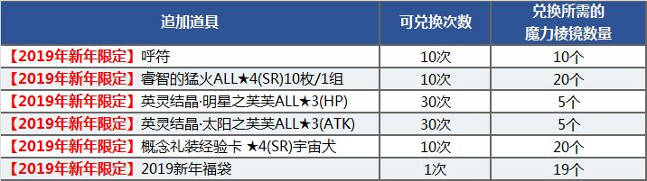 ※本次「稀有魔力棱镜兑换」中,所追加的兑换商品「★4(SR)为2018喝彩」为永久兑换内容,无兑换期限的限制。