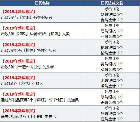 ※根据主线关卡进度,可能出现无法达成「【2019年新年限定】任务」的情况。