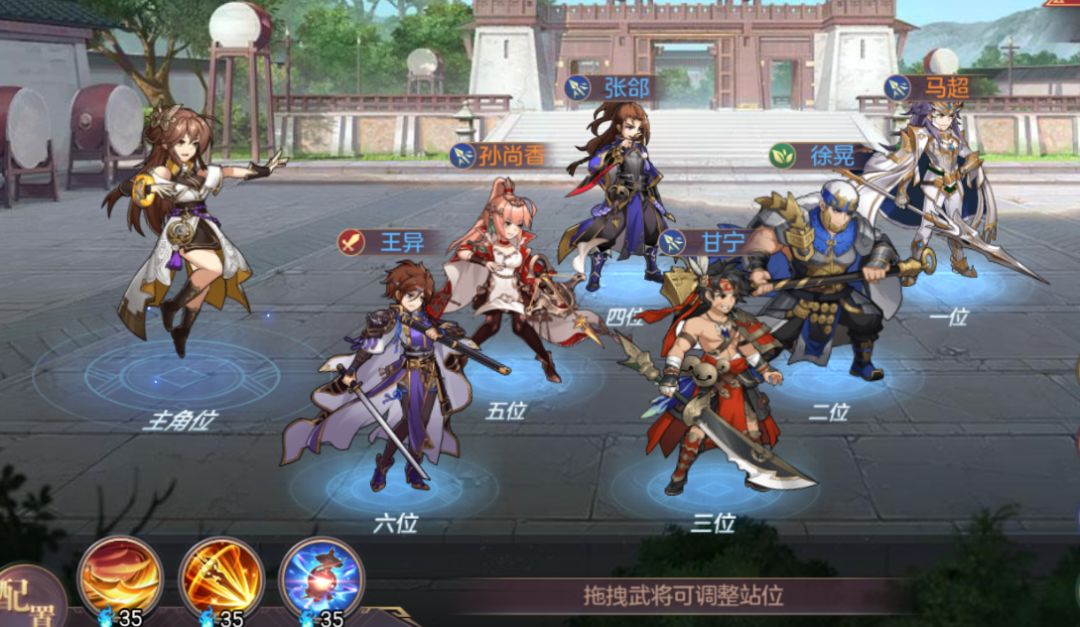 在这里,我简单介绍几个我搭配的阵容,作为抛砖引玉,能帮大家提供一些思路。阵容中会掺杂一些低星橙将和紫将,其实游戏中还是有不少方式获得橙将的,倒也不必完全放弃橙将紫将。