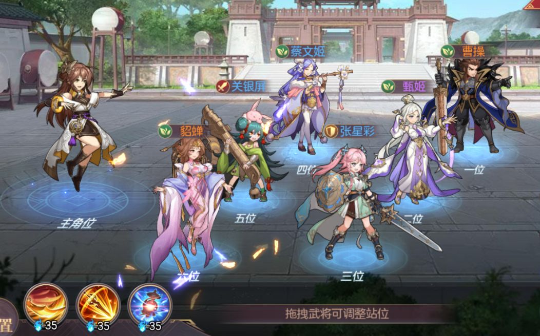 曹操1星可用,给辅助将回怒同时给对面减益。甄姬回血,女将光环。大乔给张角加buff。