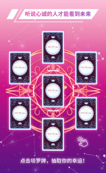 接下来魔女会为各位老师分发七张外表相同的塔罗牌,抽牌时不要太过纠结,相信自己的直觉,点击选择其中一张塔罗牌就可以啦!