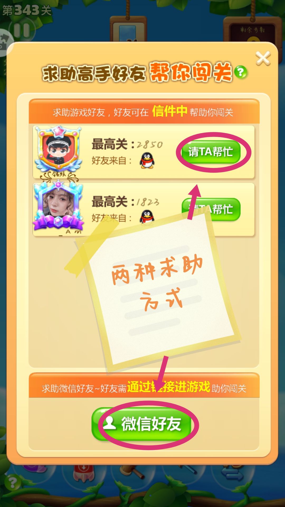 一种是wx好友代打链接,分享后别人打过这一关的可以选择帮你代打。