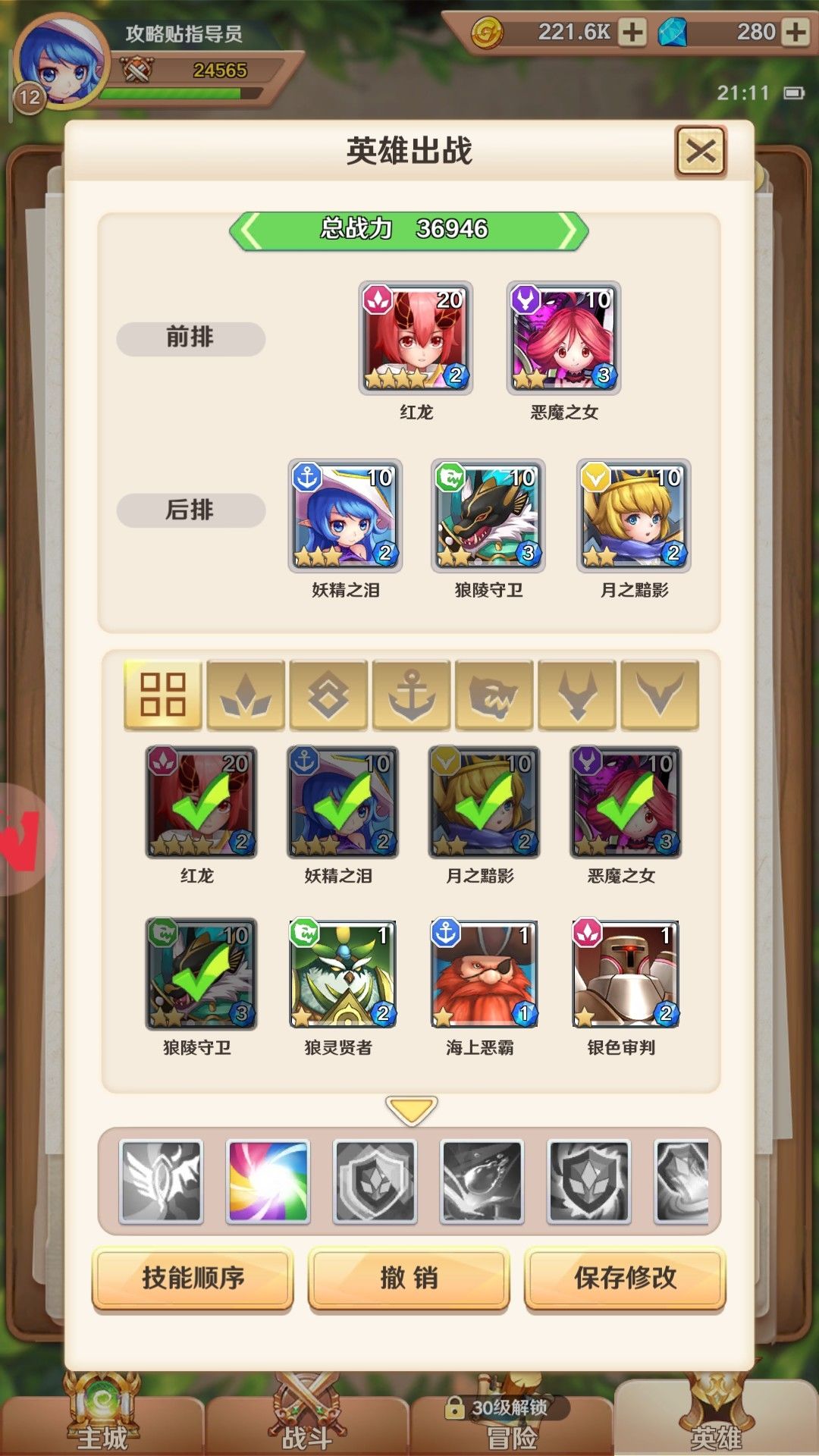 红龙,三星女巫升二十,装备装一下,其他十,然后随便挂机,开自动挑战和自动战斗后就去主页点点点就行。(左上角点金点满,每天都点,这玩意稳赚不赔)