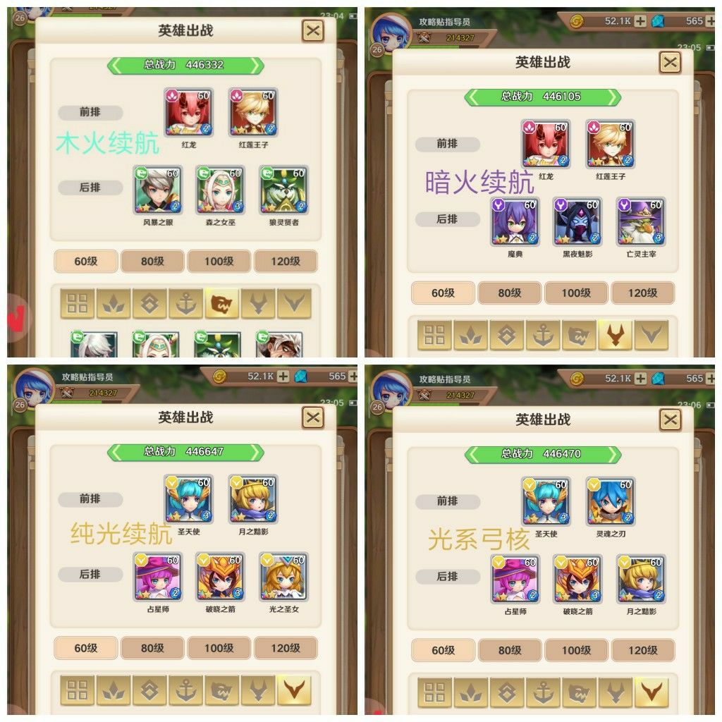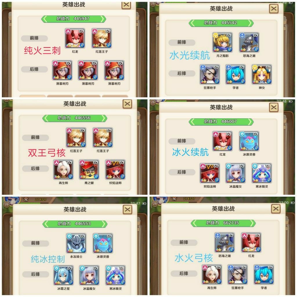 除了火系三刺和光队,其他阵容就是凑光环的,烂的要死,大家要玩还是去群里问吧,大家都很热心的。