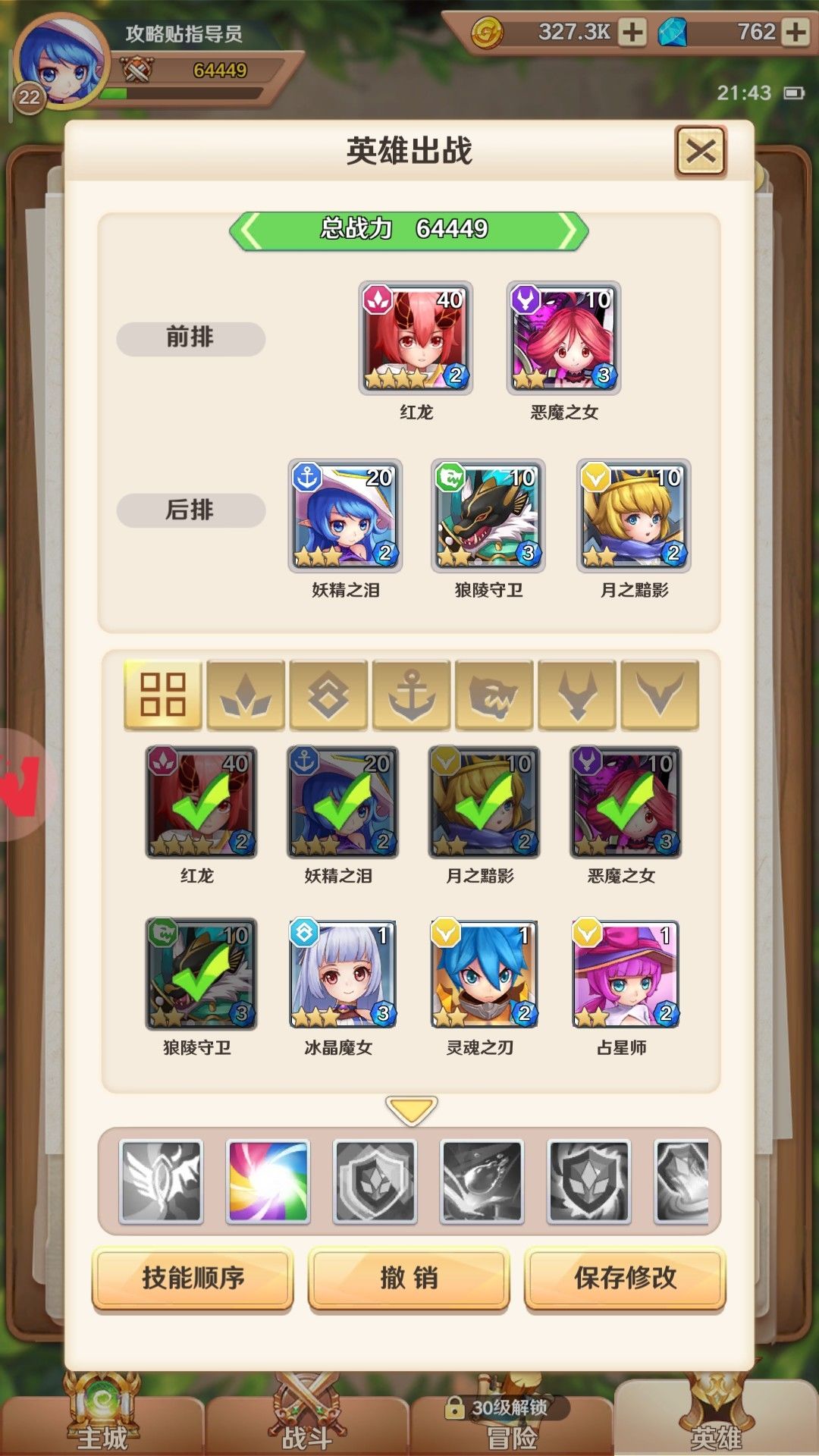 然后挂着,日常任务做一做拿150钻,推到四十换场景后就去爬塔,一样是爬到输为止。回来升升战力继续推关。