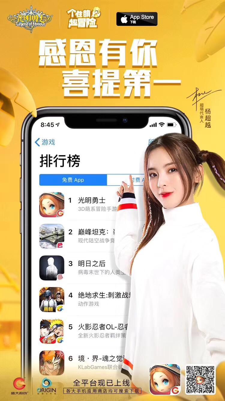感恩有你,喜提第一!由盛大游戏推出的,首款3D萌系超自由冒险手游《光明勇士》,超萌公测正在火爆进行中。短短两天时间内,《光明勇士》迅速积攒大量好评,甚至登顶iOS免费榜榜首,人气火爆程度令人惊叹。那么,《光明勇士》中到底蕴含怎样的魅力呢?