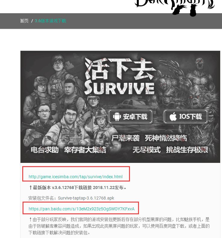 黑屏玩家解决包网页下载链接地址:http://game.icesimba.com/tap/survive/index.html