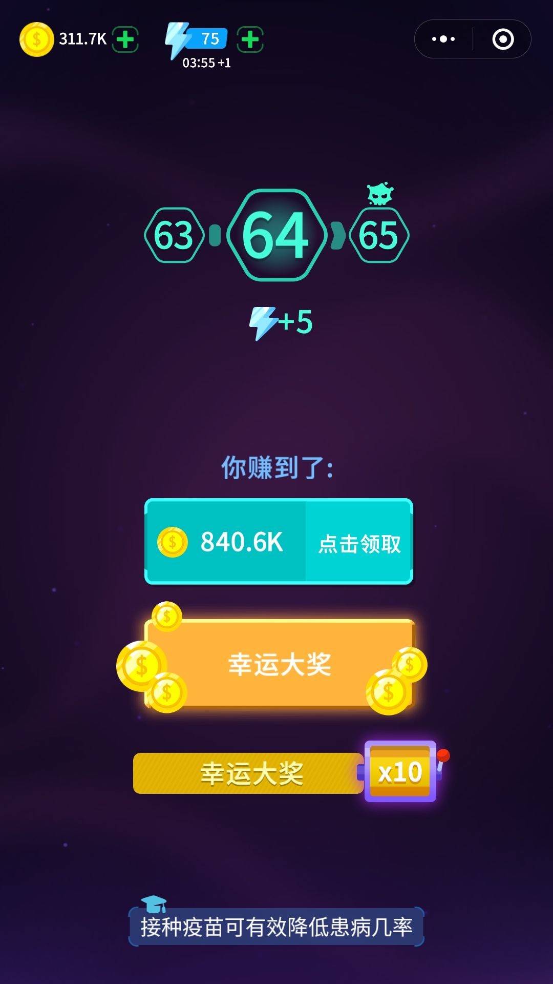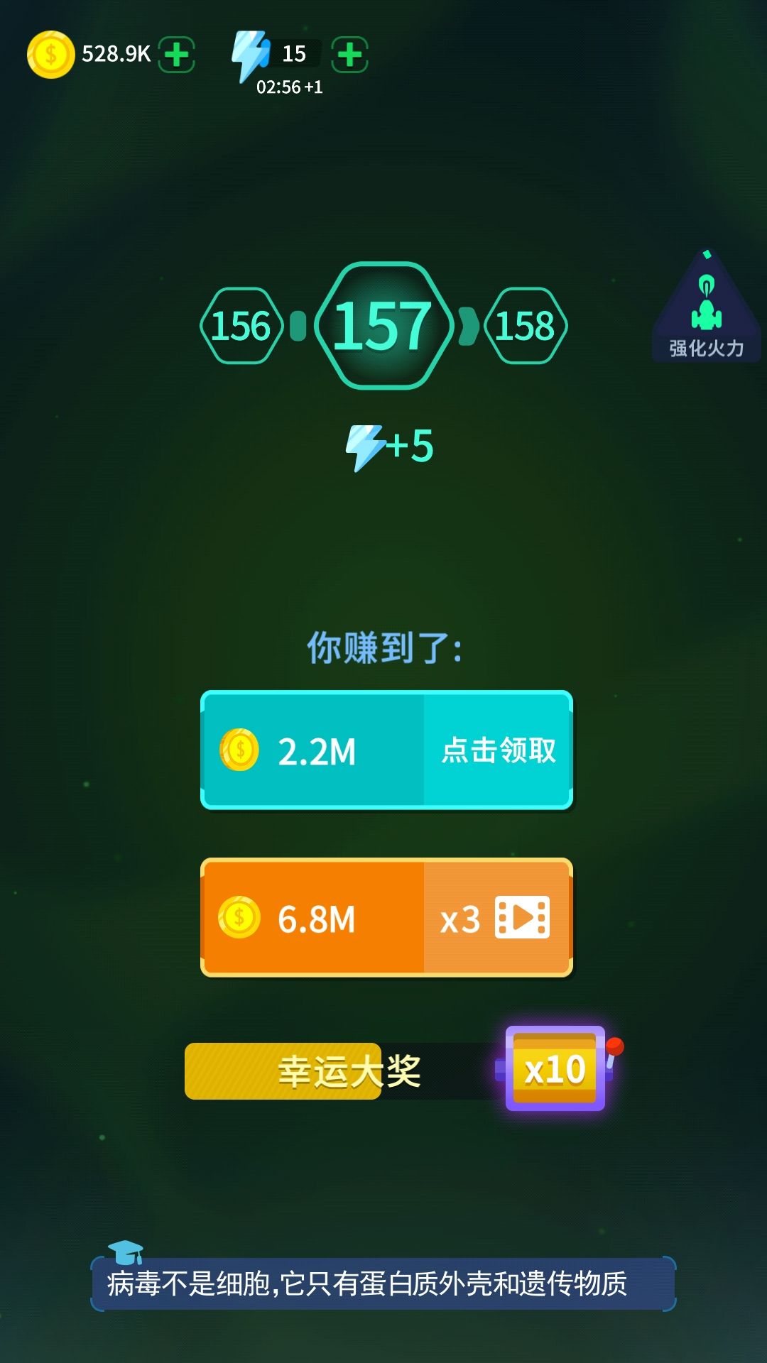 还有一个打病毒的技巧,前面刚刚出现病毒的时候,尽量上去贴着病毒打,红色的打不动就让它走,打掉病毒的第一时间如果有道具,可以更快的接到,一般接到了攻击行道具,这关基本稳了,因为在你没有用完这个道具之前,会有新的道具出现,用这个道具加成去捡新道具,如果脸黑,,没有攻击道具,那就尴尬咯,慢慢打,接受被病毒覆盖的场景吧,哈哈哈哈!