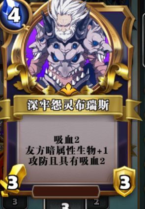大公其实最好是4张,大公这张卡,剧毒,伤害4,吸血4,可白嫖。简直是质变神卡。但我只有一张,拿了梅林该隐魔眼替代。