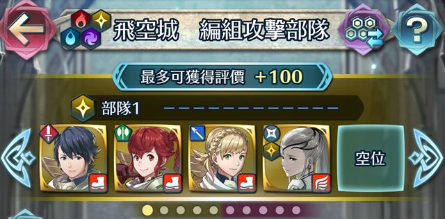 於編組飛空城的攻擊部隊時,將可分別編組於「光」和「天」兩種季節出擊的 5 支部隊。