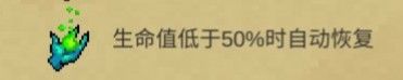 一个正面因子,可以在残血的时候补点血,但在弹幕攻击时就没用了,会直接去世。假如你玩的角色是单数血量,那么将恢复:血量上限-1/2 滴血。(例如:5血回到2血,7血回到3血)推荐天赋:血盾。(增加血量上限)