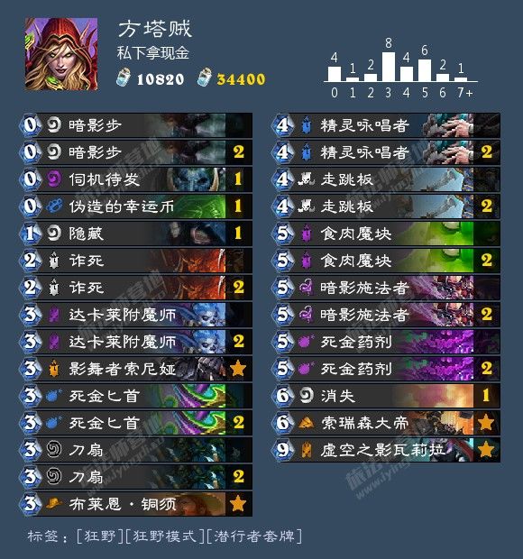 具体斩杀是达卡莱大帝减费后手中两个011的塔,上魔块吞,提前挂好刀,砍一下触发亡语,一个死金药剂,走跳板杀魔块,最后跳币达卡莱。一共60点斩杀。