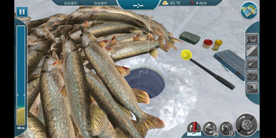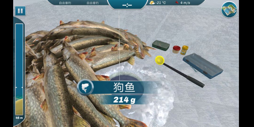 由于是第一次遇到鱼群,场面受不到控制,简直差不多掉帧状态,而且鱼线也已经卡到弯凸了,而且我也不是很熟悉鱼群结束时间,希望可以不要那么卡😂😂(捂脸)