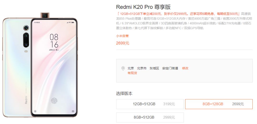 奖品: - Redmi K20 Pro 12GB + 512GB