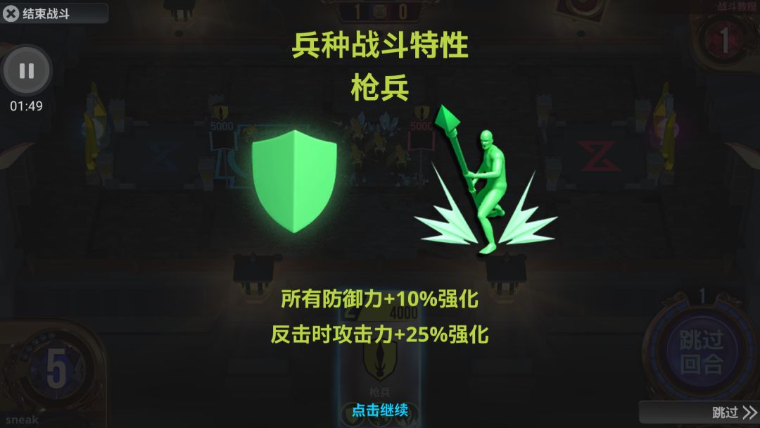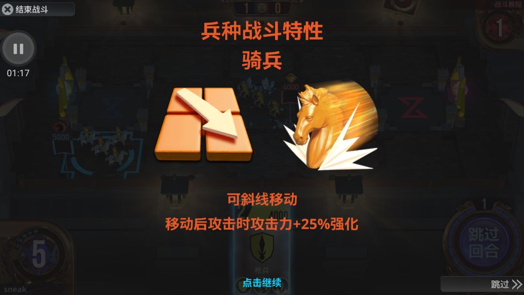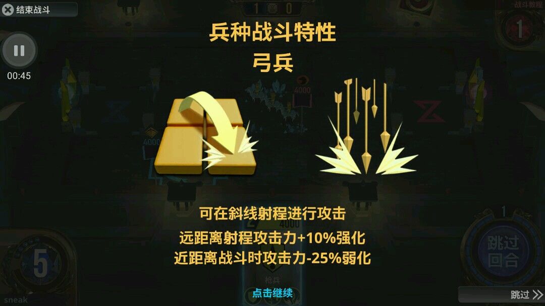 同时,三种兵力还能被相匹配的英雄强化(兵种特技激活)。比如弓兵被激活后,可在直线1格变为2格的距离进行攻击;骑兵激活后可穿过己方队伍移动。
