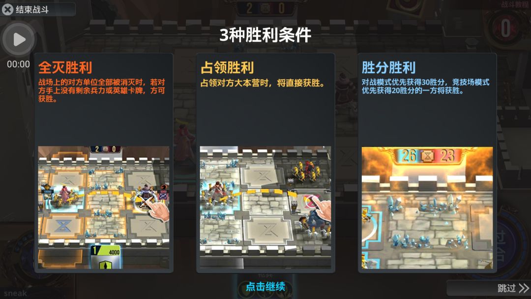 玩家将在5列3行的战场中与对手对抗。用手中的卡牌召唤不同的兵种上场、配合不同的英雄打击敌人。