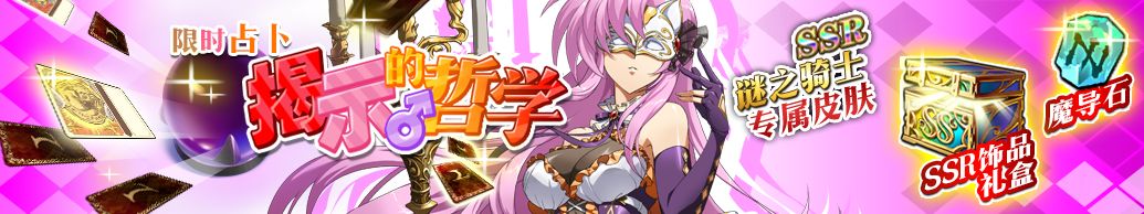本次活动的终极大奖为SSR英雄-谜之骑士限定皮肤「术法魅影」。