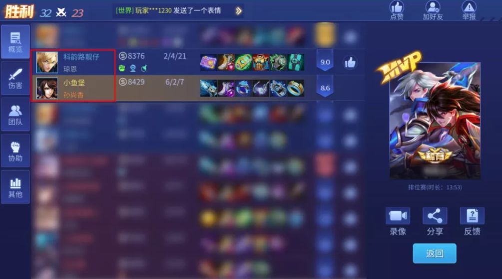 3、活动参与者之一长按识别推送中的二维码报名填写两位参与者角色ID、角色昵称、角色所在区等信息,并发送对应截图即可(包含2局比赛的结算页面,如下图所示)。