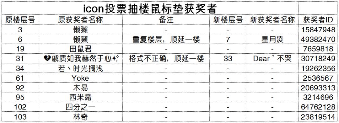 然后是万众期待的部分——鼠标垫抽奖名额出炉啦!!