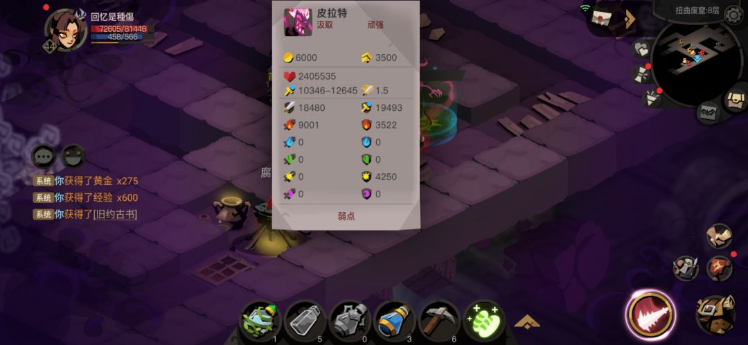 刚搜刮的俩血药又交了,这个dps太高,有点难顶,应该把魔烬守护掏出来换掉冰弹的。