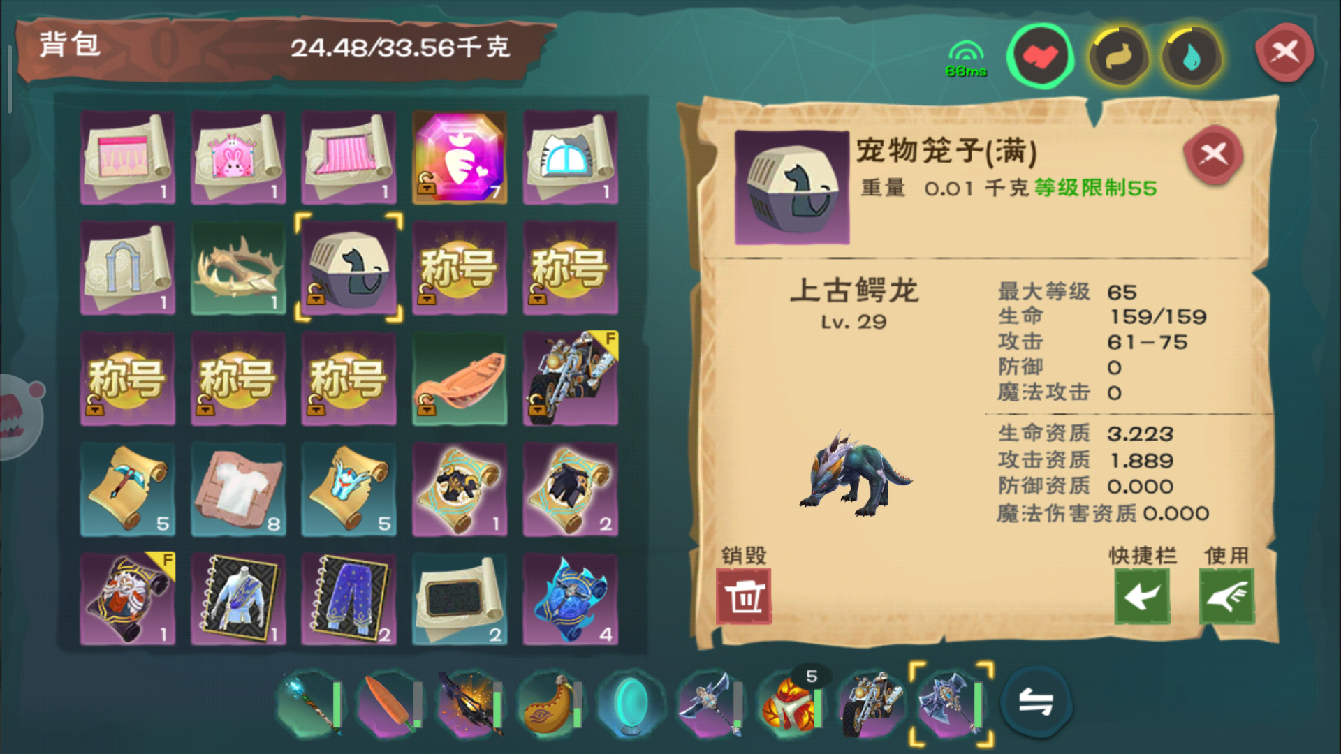 宠物一训弱十倍 箱子全是镐图纸 随时都在吃东西 猪也没见饿的有这么快的 老子看个广告都要一分钟 看完结束又重新登录 一进去装备耐久全掉了 玩尼玛个比