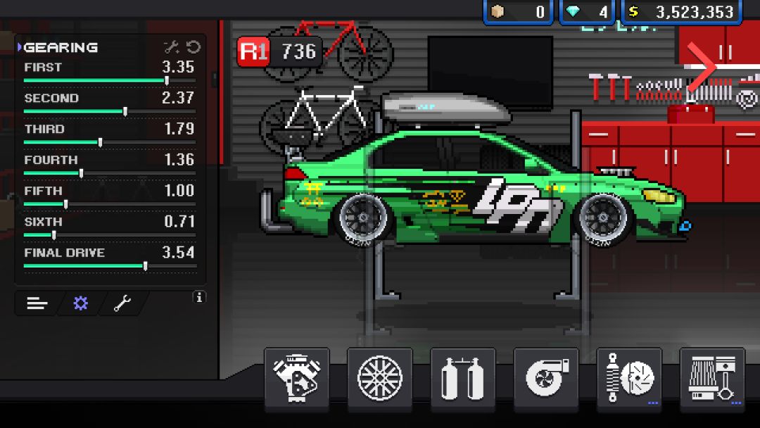 每个齿比都经过多次测试调校,换挡转速掉在8000左右,加速没毛病,每台车除了强制进气(涡轮增压和机械增压)不是最高配置(穷死了)其他基本上都是最高配,活塞全是最贵的,悬挂全是气动,电控单元全是Type R高转的,EVO X和EVO IX MR的中冷器是最贵的,其他全是金边的。