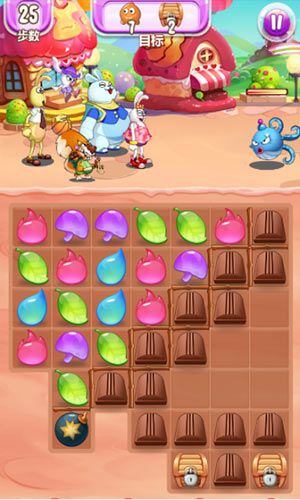 要求:25步内消除8个贪吃怪,1个宝箱。