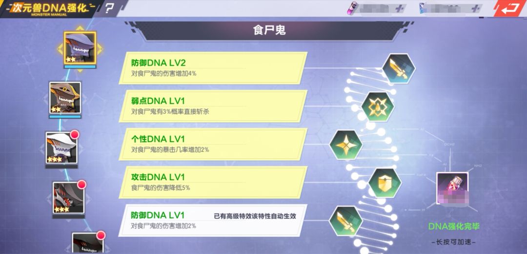 获得DNA因子之后可以消耗DNA因子对应的解锁对该次元兽的DNA特性
